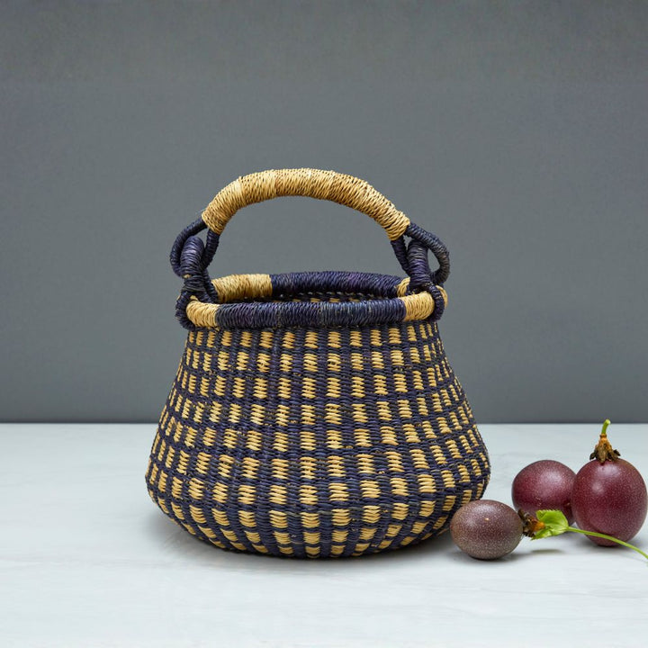 Small Colorful Bolga Pot Basket, 9" W, Decorative Bowls, Storage, Harvesting, Gardening, Foraging, Fruit Picking, Hand Woven, Boho Patterns, African, Made in Ghana